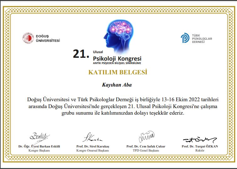 Türk Psikologlar Derneği tarafından düzenlenen 21.Ulusal Psikoloji Kongresi (Cinsel terapi atölye çalışması)